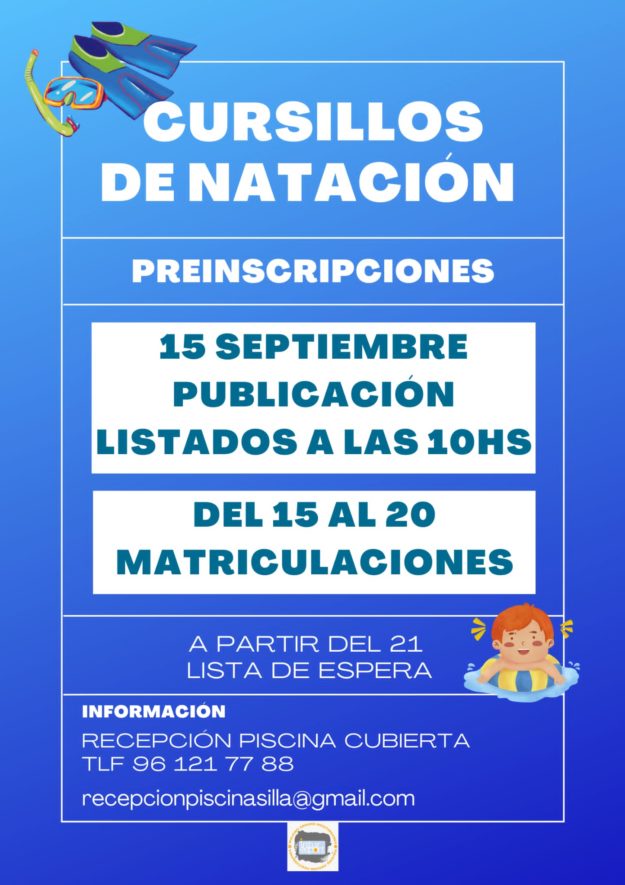 En la Piscina Municipal de Silla os recordamos que continúa abierto el proceso de preinscripción para los cursillos de natación. Os informamos que el listado de admitidos se publicará el 15 de septiembre y la matriculación se realizará del 15 al 20 de este mes. Asimismo, destacar que las personas que se apunten fuera de…