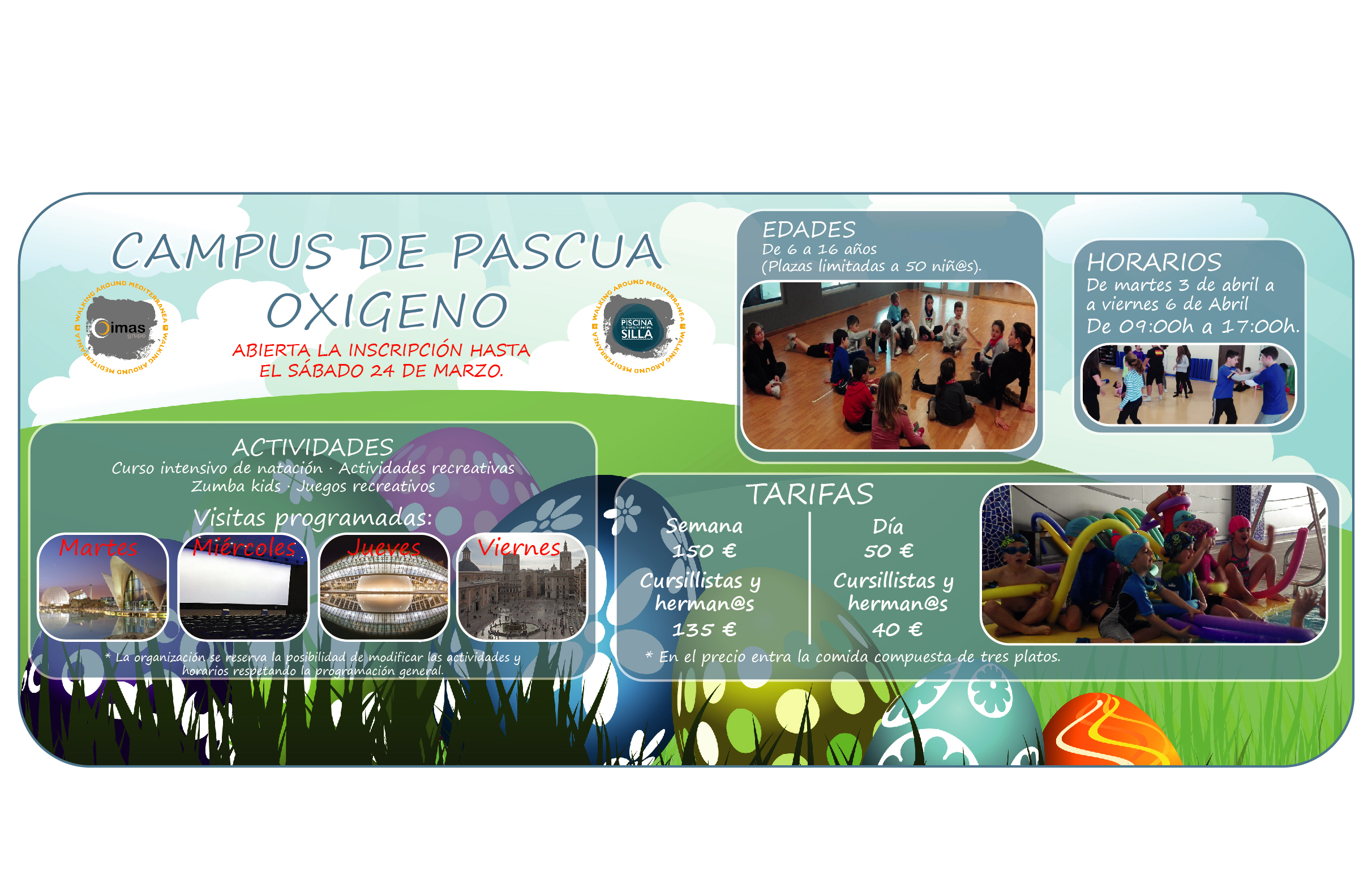 Llega el verano y con él, llega el final del curso escolar 2017/2018. Por ese motivo la Piscina Cubierta Municipal de Silla quiere presentarte el Campus para niños/as de 4 a 14 años. Éste dará comienzo el próximo 2 de julio y finalizará el 27 de julio. Desde hoy mismo ya puedes realizar la inscripción…